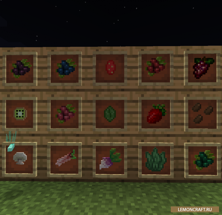 Мод HarvestCraft добавит в игру огромное количество разнообразной пищи, которая будет выглядеть очень реалистично. Так как в стандартной версии игры еды не так уж и много, авторы мода решили исправить данный недочет. Большое количество овощей и фруктов придадут игре больше реалистичности. Все фрукты и овощи нужно будет вырастить, это еще один плюс мода для тех кто любит заниматься фермерством. Весь процесс получения новой еды займет некоторое время, но поверьте, это того стоит.